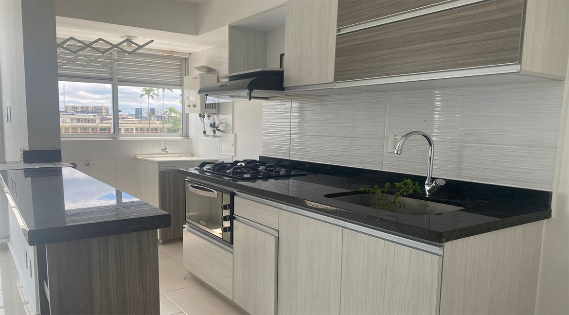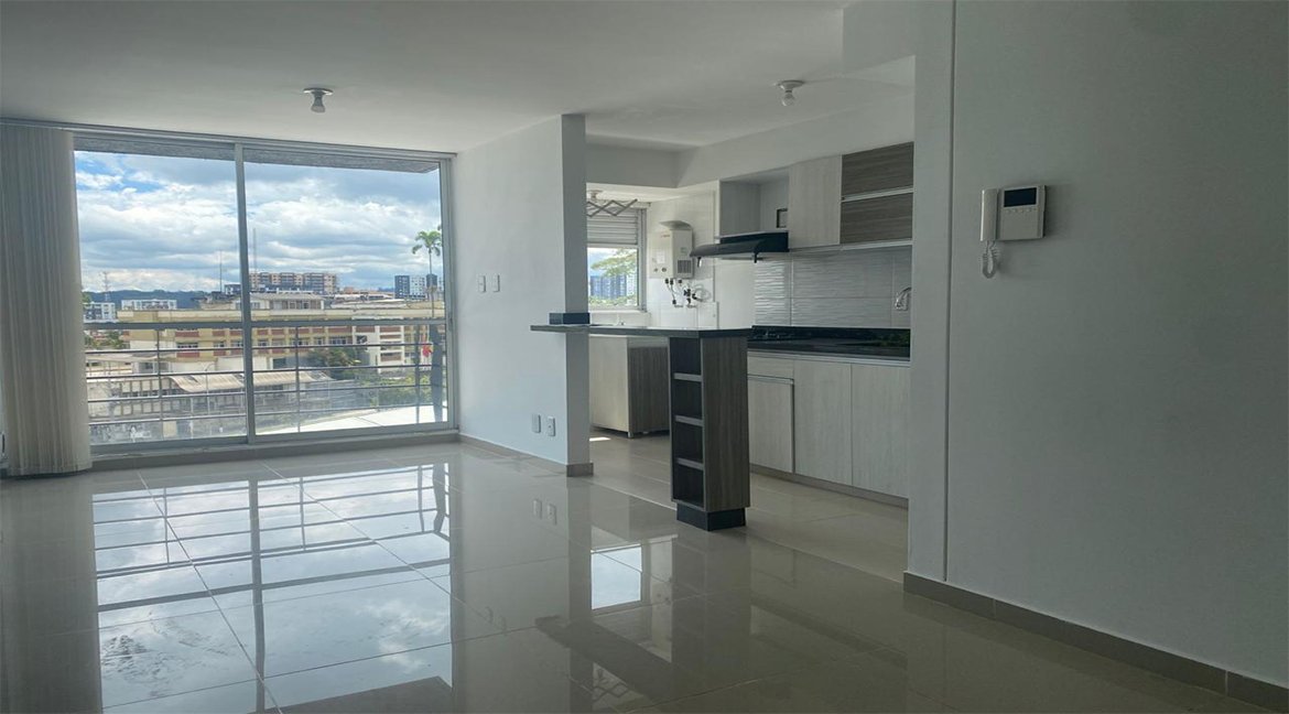 EL MODERNO APARTAMENTO CUENTA CON DOS HABITACIONES Y DOS BAÑOS COMPLETOS, OFRECIENDO COMODIDAD Y PRIVACIDAD PARA SUS HABITANTES. DISPONE DE UNA SALA-COMEDOR AMPLIA E ILUMINADA GRACIAS A SUS GRANDES VENTANALES, QUE BRINDAN VISTAS PANORÁMICAS Y EXCELENTE VENTILACIÓN NATURAL. LA COCINA INTEGRAL A GAS, TIPO AMERICANA, ESTÁ EQUIPADA CON GABINETES FUNCIONALES Y UNA BARRA AUXILIAR QUE CONECTA CON EL ÁREA SOCIAL. ADEMÁS, LA PROPIEDAD INCLUYE PARQUEADERO CUBIERTO PARA PROTECCIÓN DEL VEHÍCULO Y PISOS EN CERÁMICA BRILLANTE QUE REALZAN LA LUMINOSIDAD DEL ESPACIO, TODO EN UN AMBIENTE CONTEMPORÁNEO Y ACOGEDOR, IDEAL PARA QUIENES BUSCAN UN HOGAR CÓMODO Y FUNCIONAL EN LA CIUDAD.